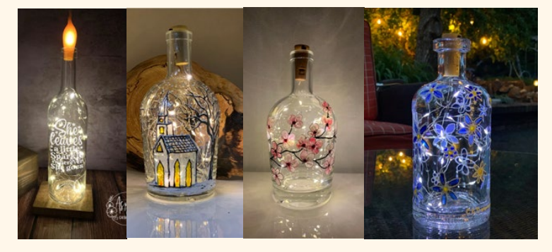 Themed Creations: Design bottles that reflect a theme or tell a story. For example, you could paint a scene of a church with lit windows and a tree with bare branches, creating a charming and serene piece of art.