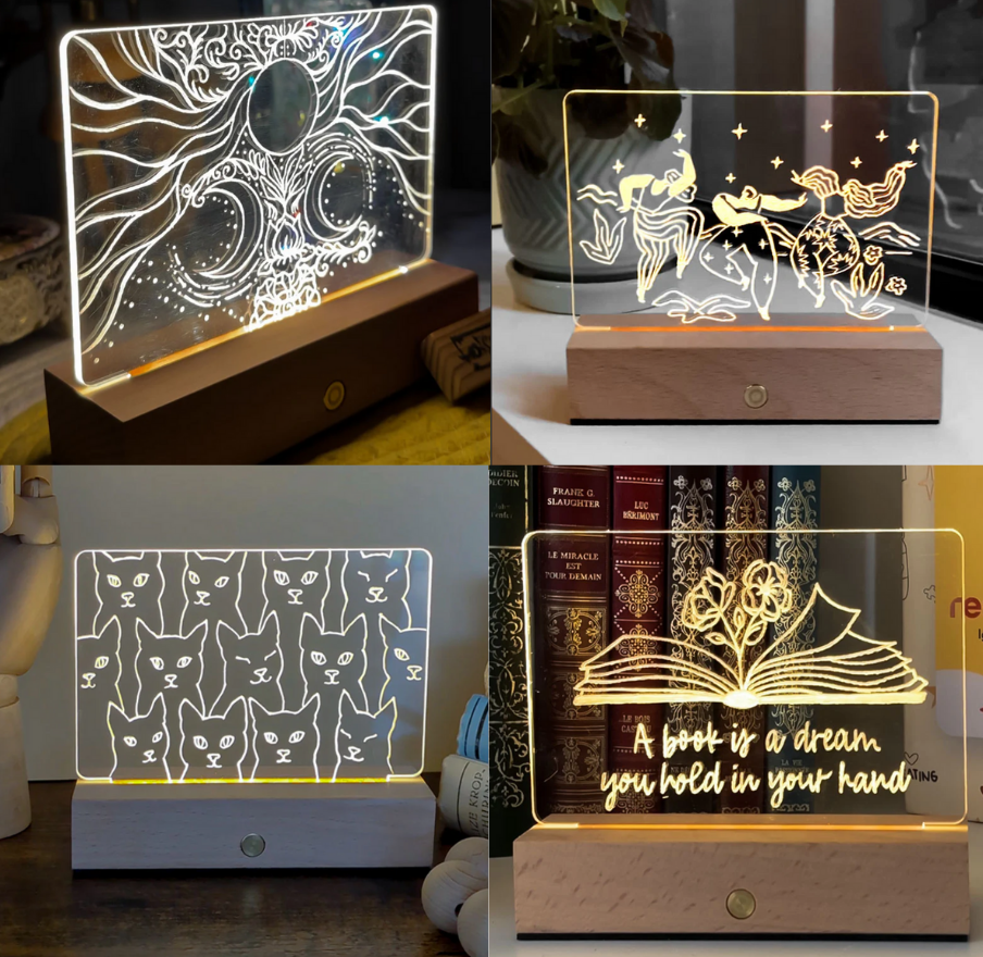 Customized Acrylic Lamps: Transform ordinary acrylic panels into personalized decor pieces. Engrave intricate designs, inspirational quotes, or names to make them truly one-of-a-kind. Imagine creating a lamp with a constellation design, a floral wreath, or a special message for a loved one.